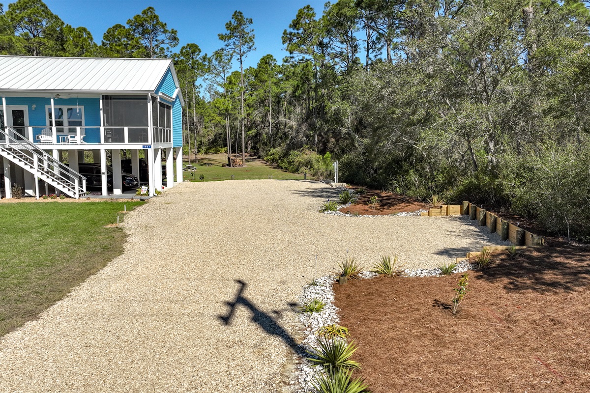 Inside, the home features smart TVs, a DVD player, and a selection of kids’ toys to keep everyone entertained. Gather around the stunning custom Cypress dining table—handcrafted by a local artisan—for meals and memories. A screened-in porch provides the perfect spot for morning coffee or a peaceful evening unwind.