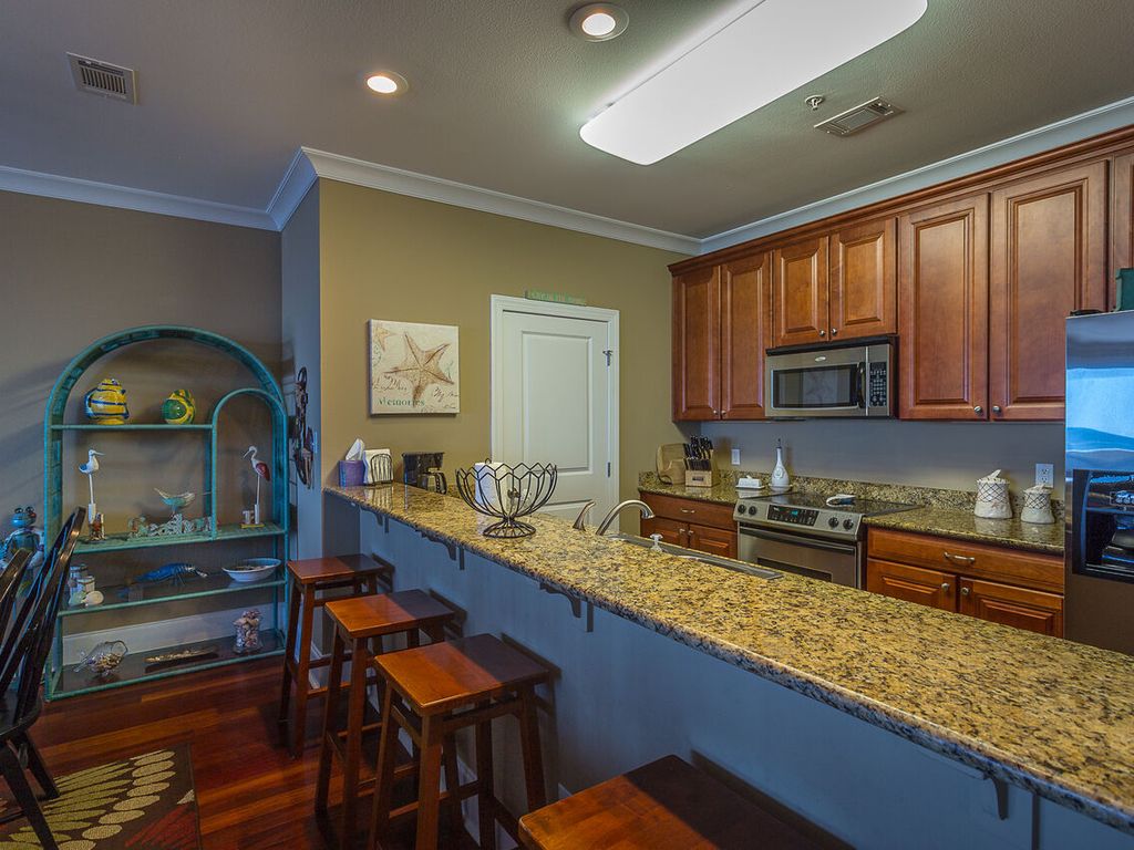 Fully Operational Kitchen Where You Can Cook With A View!! There Is Seating For 12 To Dine At The Bar And The Dining Room Table, The Unit Has A Full Size Washer And Dryer In Case You Run Out Of Bathing Suits!