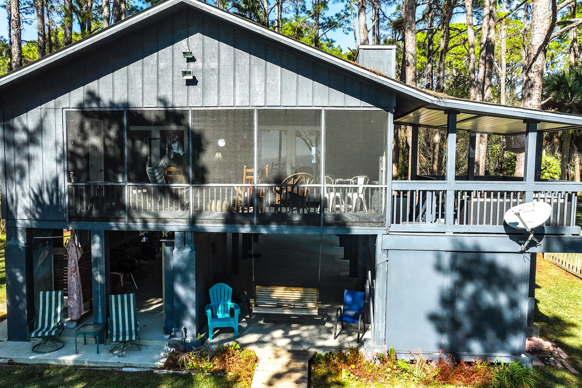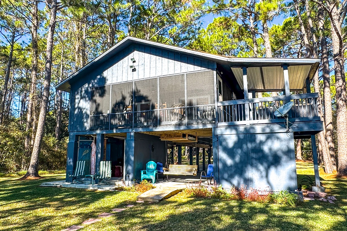 2 Bedrooms • 2 Bathrooms 2 Baths • Sleeps 2-8Blue Crab Shack is a beautiful 2BR/2BA waterfront house with fishing pier! Dock your boat for your stay and shoot across to beautiful Dog Island for the day or simply enjoy the tranquility and sunsets that The Forgotten Coast is known for! This property can sleep 8 comfortably, with a queen in the master bedroom, 1 queen and 1 set of twin bunk beds in the second bedroom, and 2 twin beds in the cozy loft area. The kitchen is fully stocked with everything you need for a home cooked meal or enjoy one of our many local restaurants. The porch is screened in and has plenty of seating for the whole family to enjoy time together! No matter if your looking for relaxation or adventure, Blue Crab Shack is the perfect place to enjoy it all. Only a short drive to Carrabelle Beach, St. George Island, or Apalachicola.