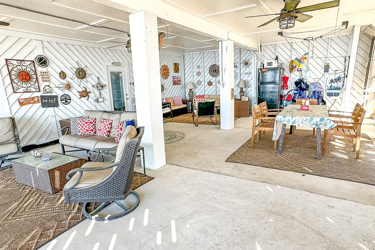 Keep up on your work-out routine in the free weight open-air gym. Jump in one of the furnished kayaks for a fun paddle around St. George Sound and share the day with friends & family and many varieties of wildlife that call this area home. Spark the night with a bonfire next to lapping waves while cooking your day's catch on furnished charcoal or gas grills. Do everything or do nothing and enjoy your vacation on The Forgotten Coast!