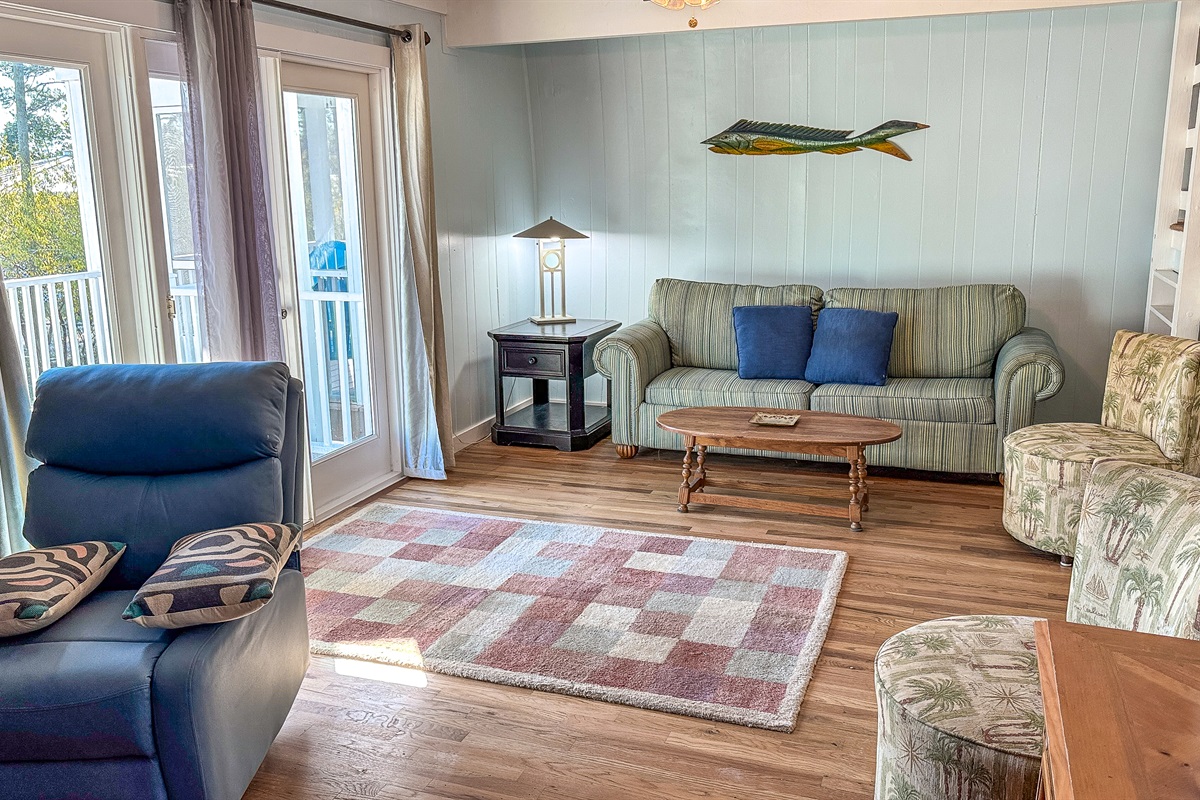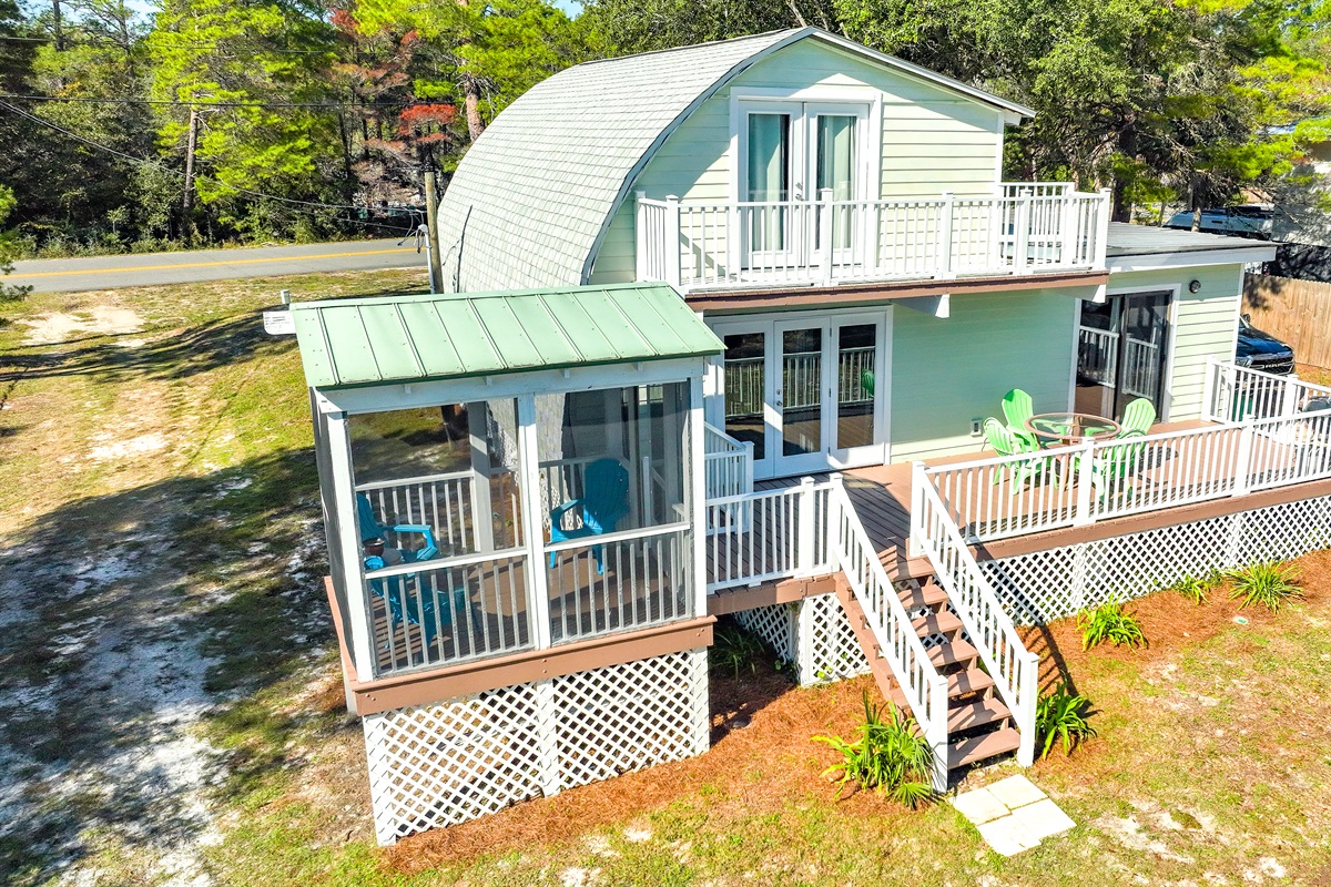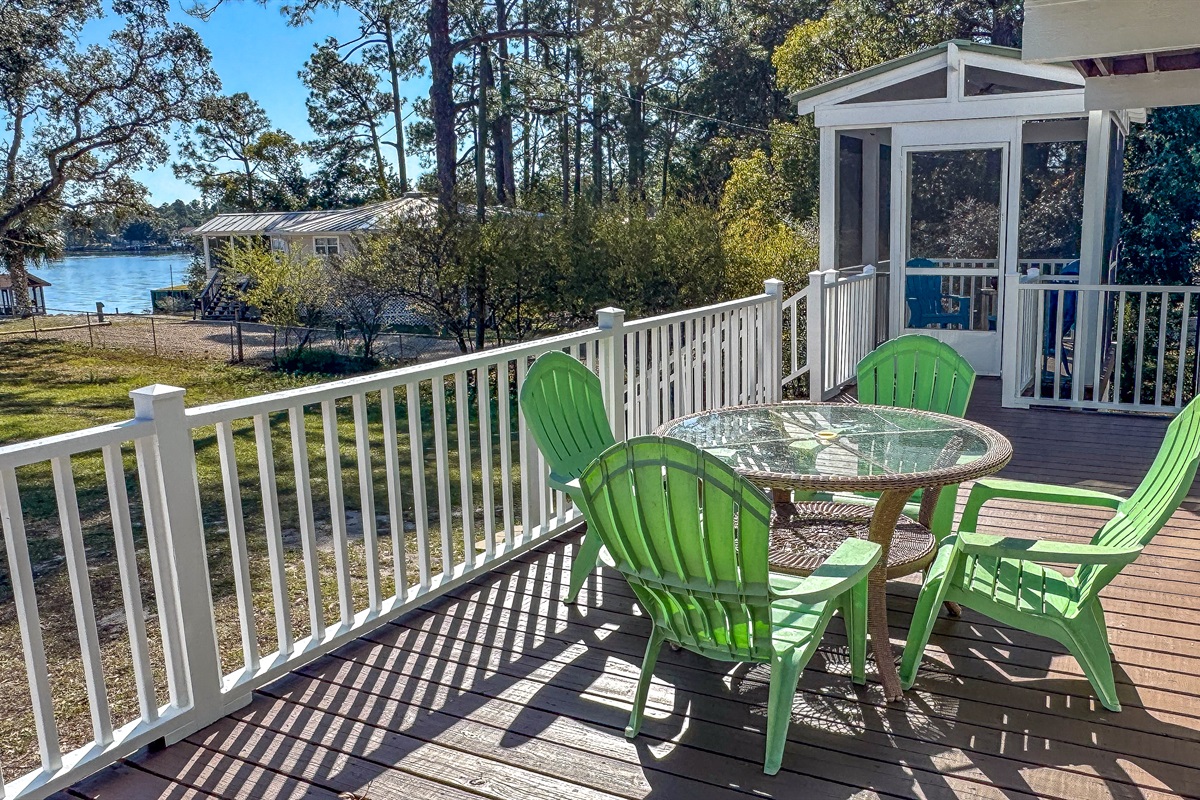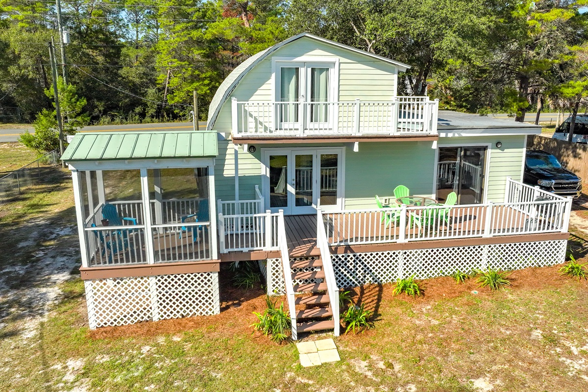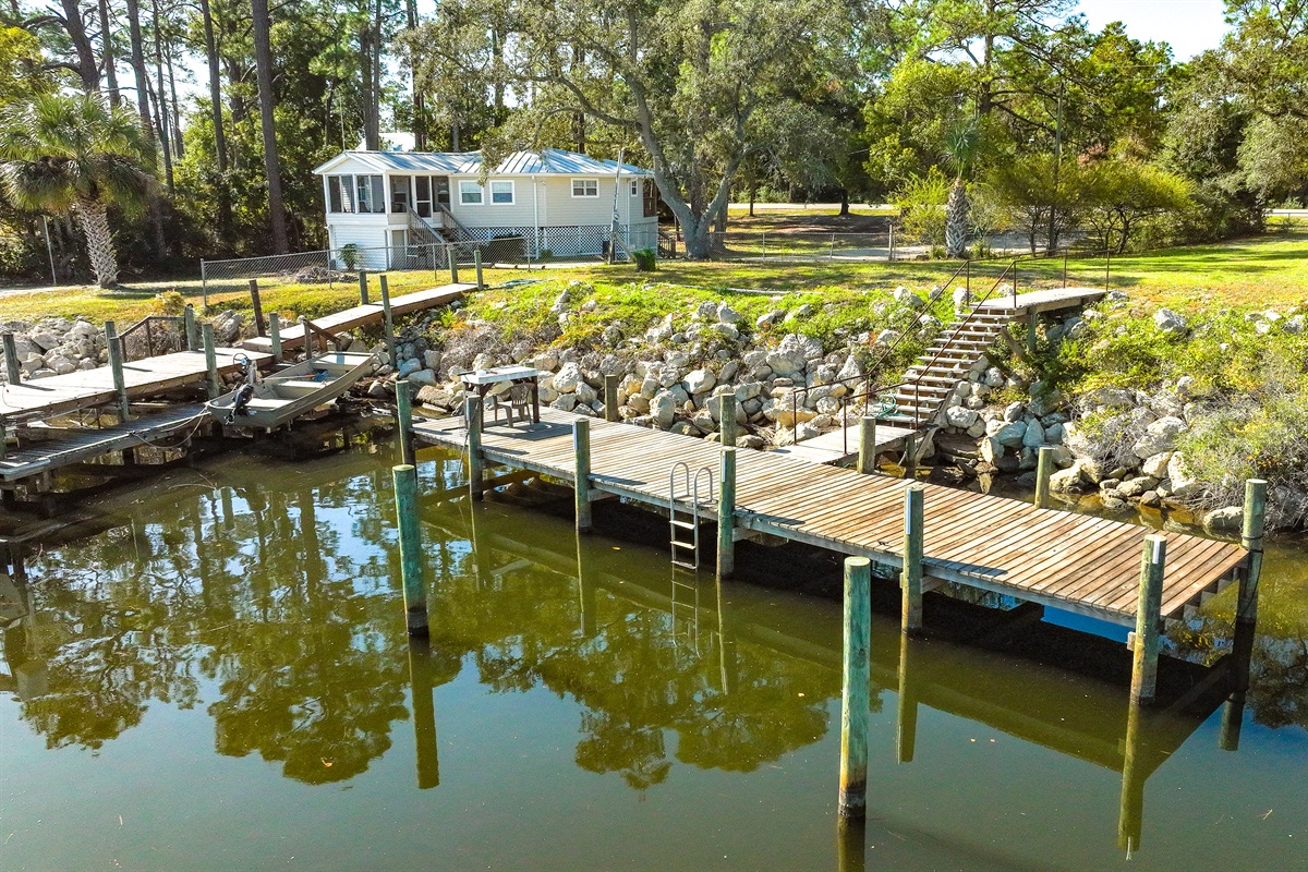 3 Bedrooms • 2 Bathrooms 2 Baths • Sleeps 4-6Need a little River Therapy? Doc Tom's is the place to be! This property is a 3BR/2BA house on the Carrabelle River, equipped with a dock, fish cleaning station, and running water, it is perfect for the everyday fisherman! This home sleeps 4-6 comfortably. The master bedroom is downstairs and has a king size bed with adjoining bathroom, the second and third bedrooms are located upstairs. One has a queen size bed, while the other room has a bunk bed with a full size bed on the bottom and a twin size bed on top. The queen bedroom has French doors that open up to the up stairs balcony, where you will have beautiful views of the Carrabelle River!