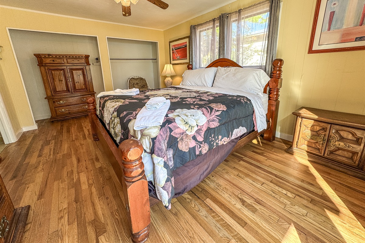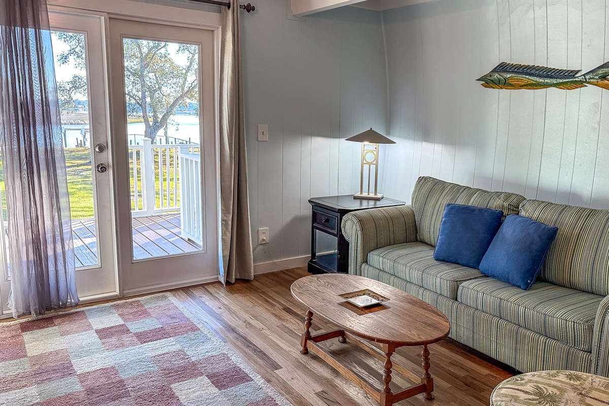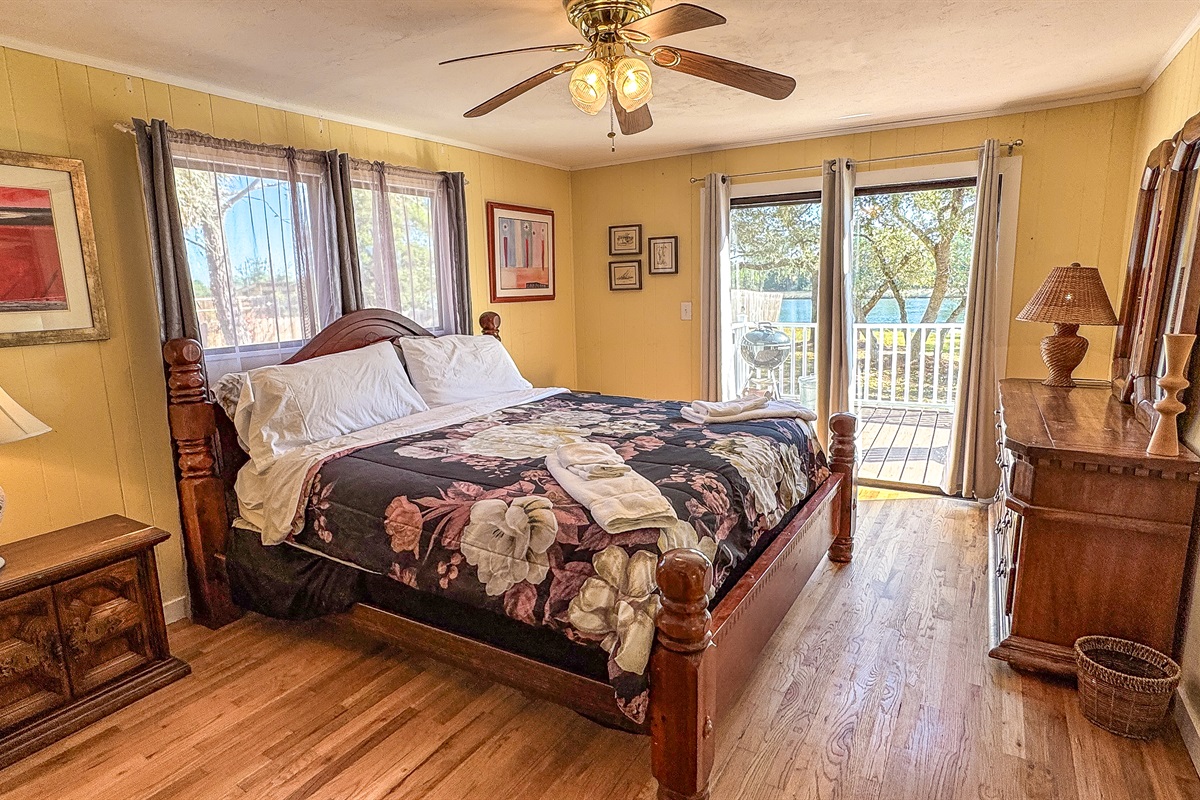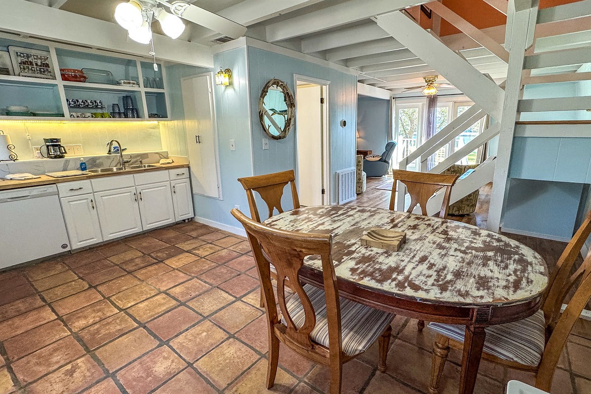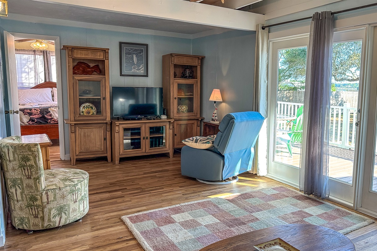 3 Bedrooms • 2 Bathrooms 2 Baths • Sleeps 4-6Need a little River Therapy? Doc Tom's is the place to be! This property is a 3BR/2BA house on the Carrabelle River, equipped with a dock, fish cleaning station, and running water, it is perfect for the everyday fisherman! This home sleeps 4-6 comfortably. The master bedroom is downstairs and has a king size bed with adjoining bathroom, the second and third bedrooms are located upstairs. One has a queen size bed, while the other room has a bunk bed with a full size bed on the bottom and a twin size bed on top. The queen bedroom has French doors that open up to the up stairs balcony, where you will have beautiful views of the Carrabelle River!