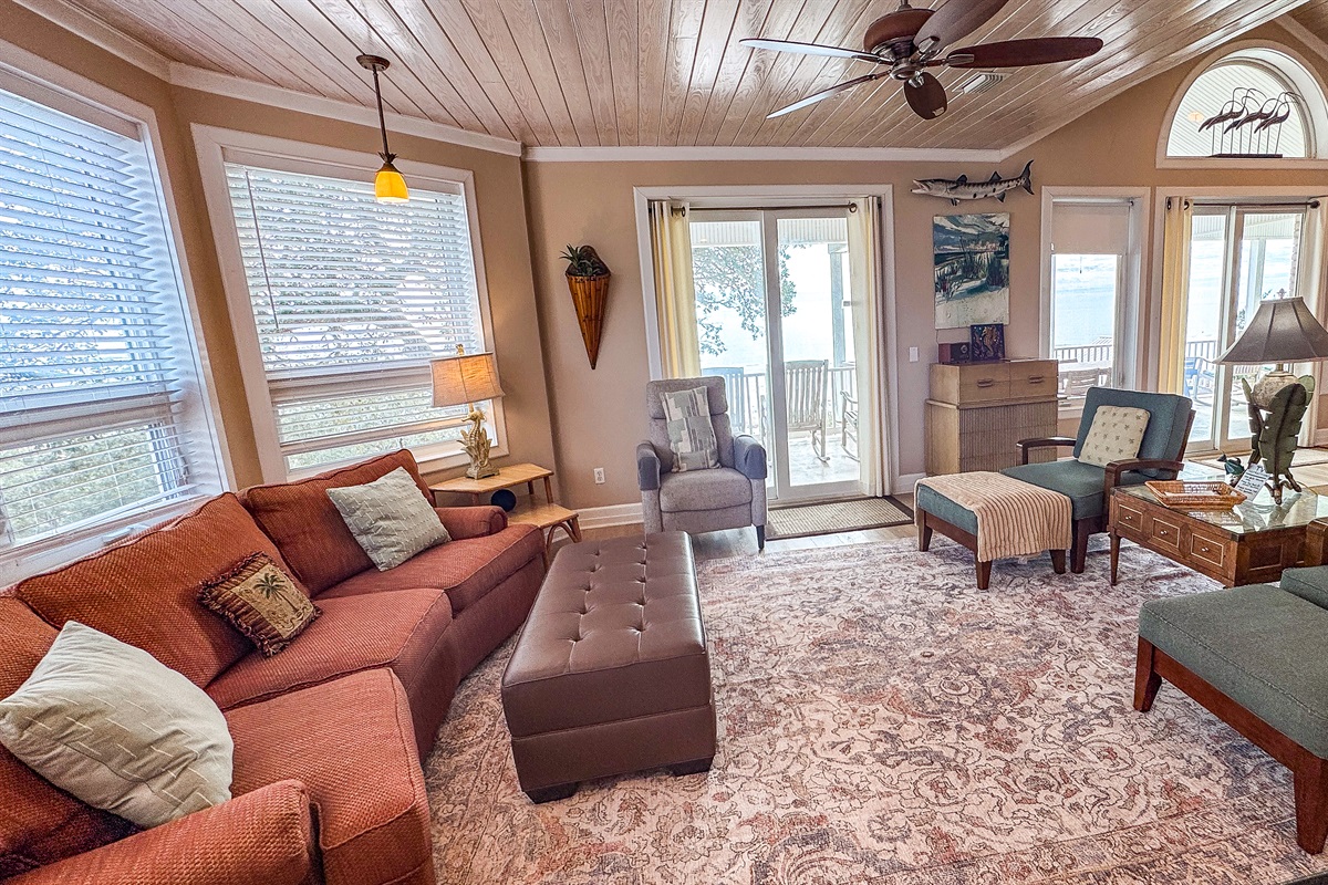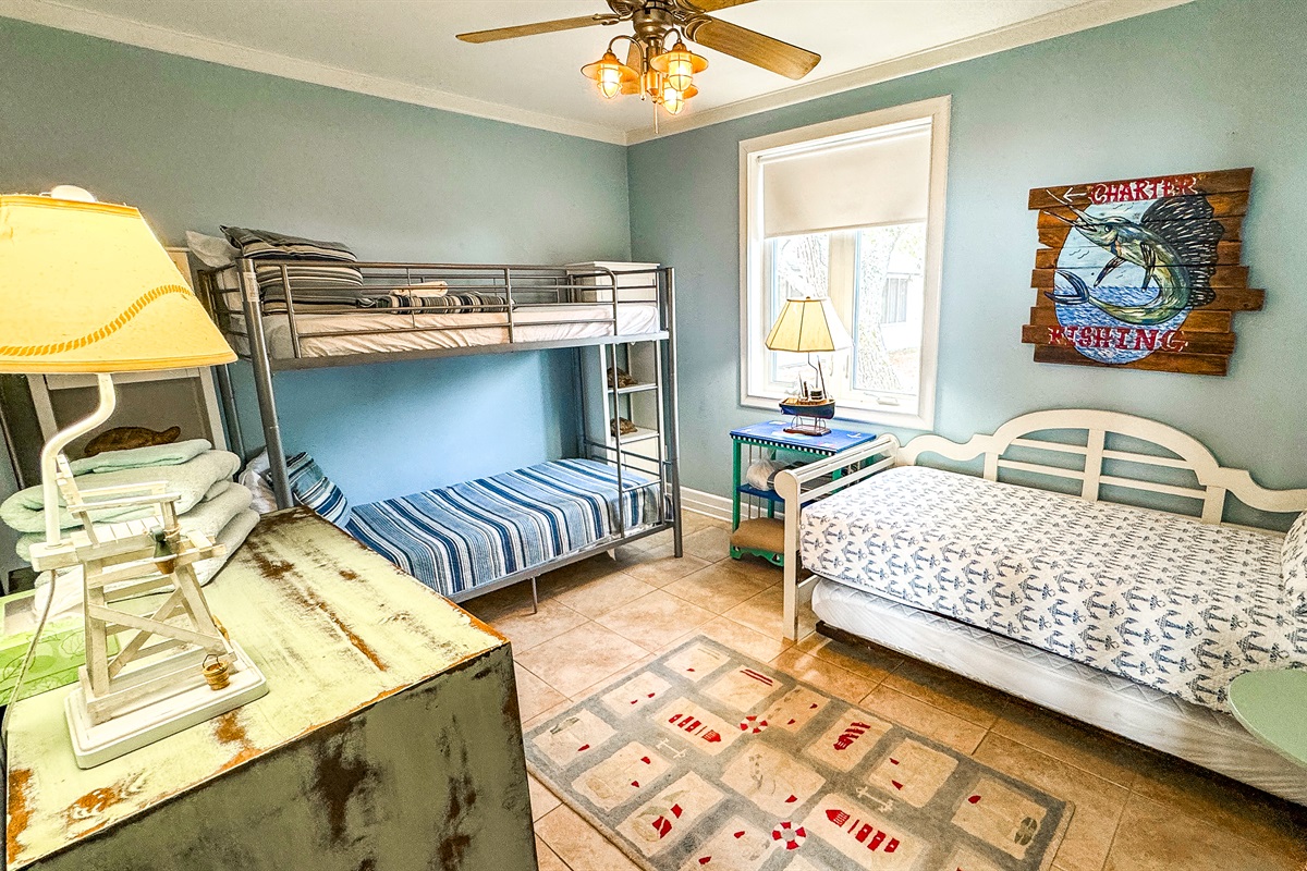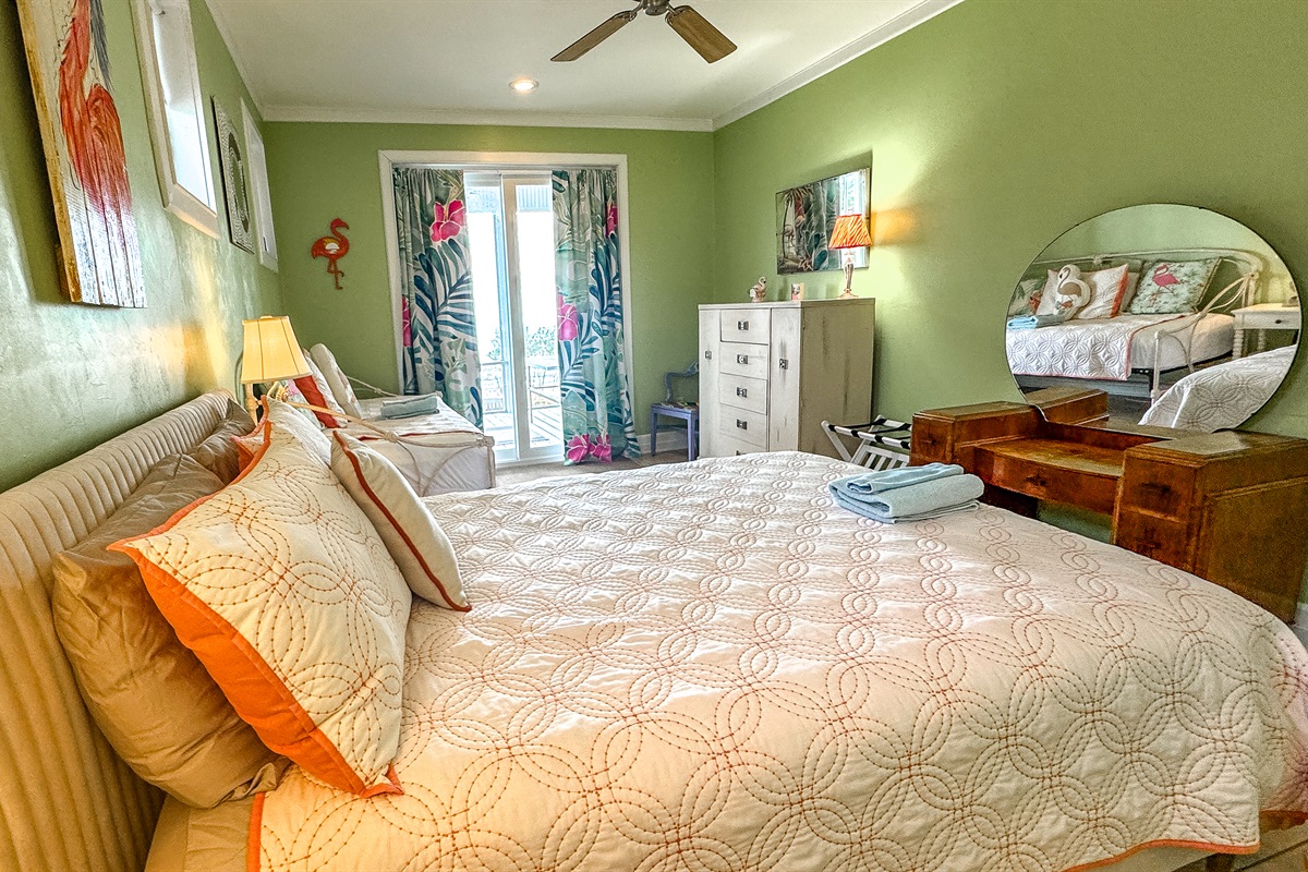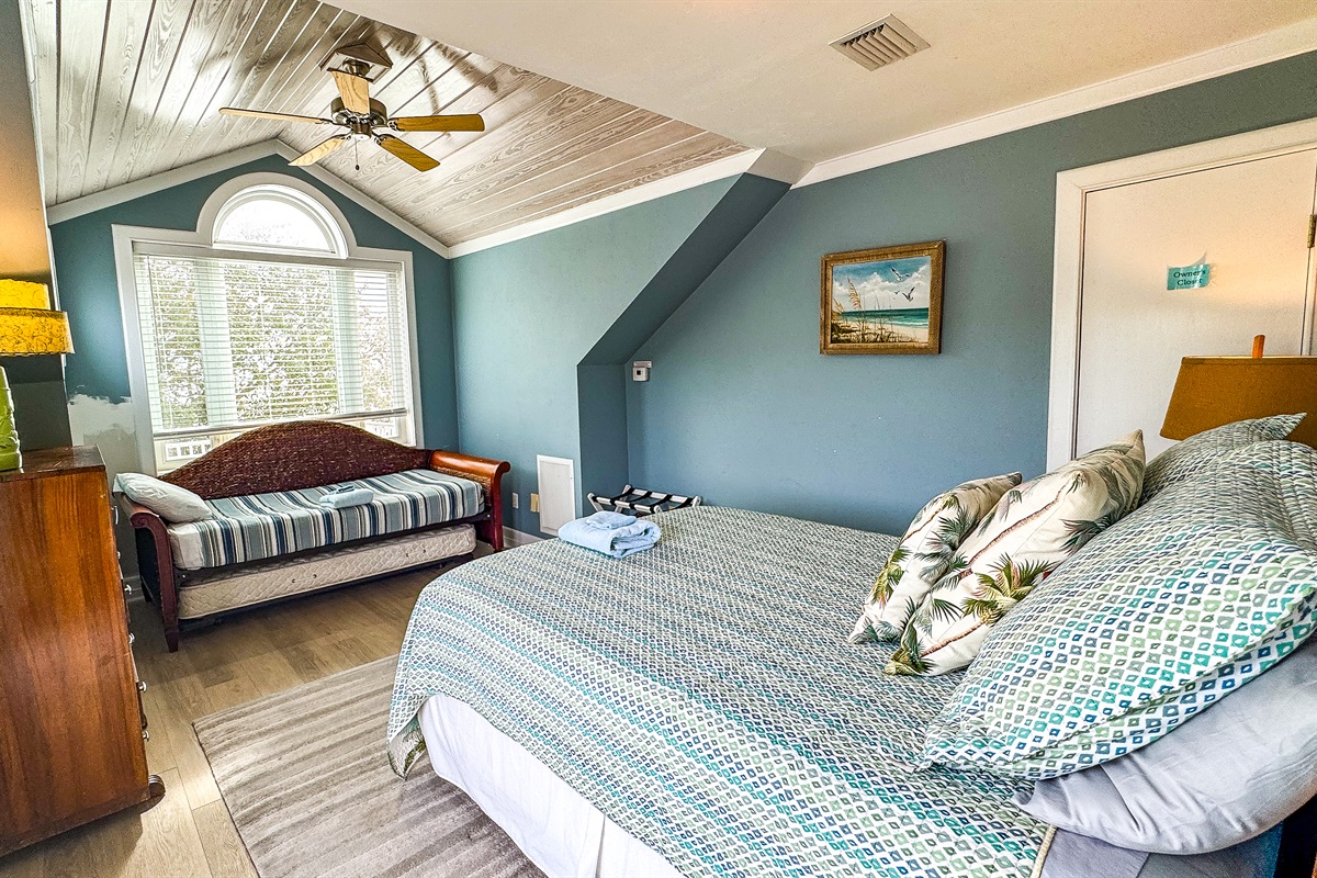 The third floor includes the 5th Bedroom, overlooks the Gulf with a Queen Bed, a Daybed with Trundle, and a Full bath. This suite opens up to the Outside 3rd Story Deck with majestic views and is perfect for sunning, star gazing. etc.